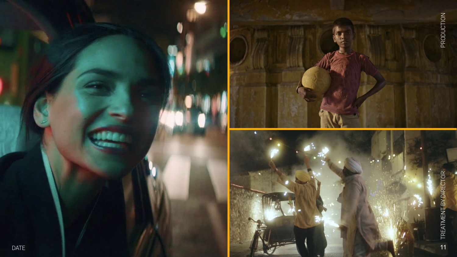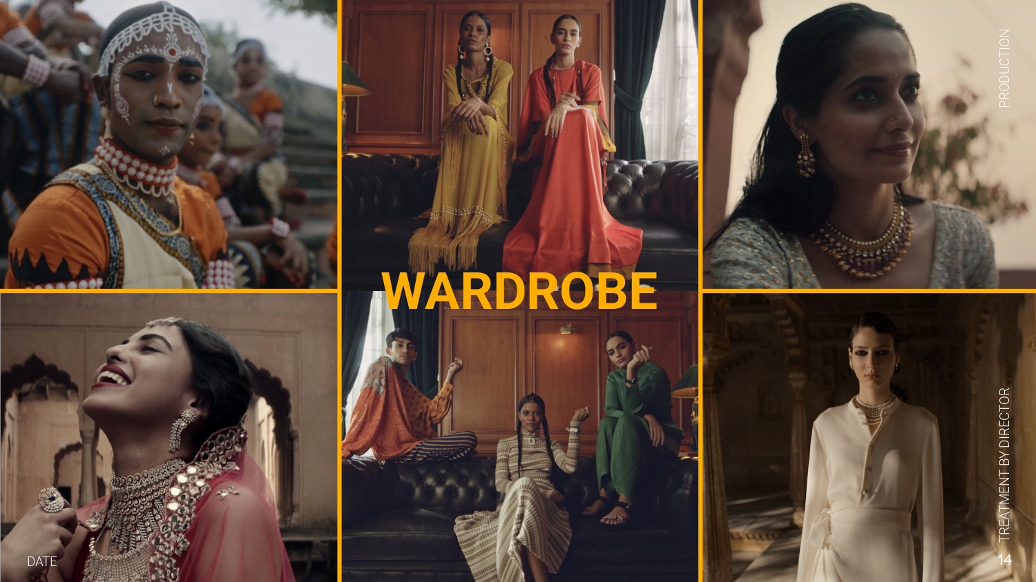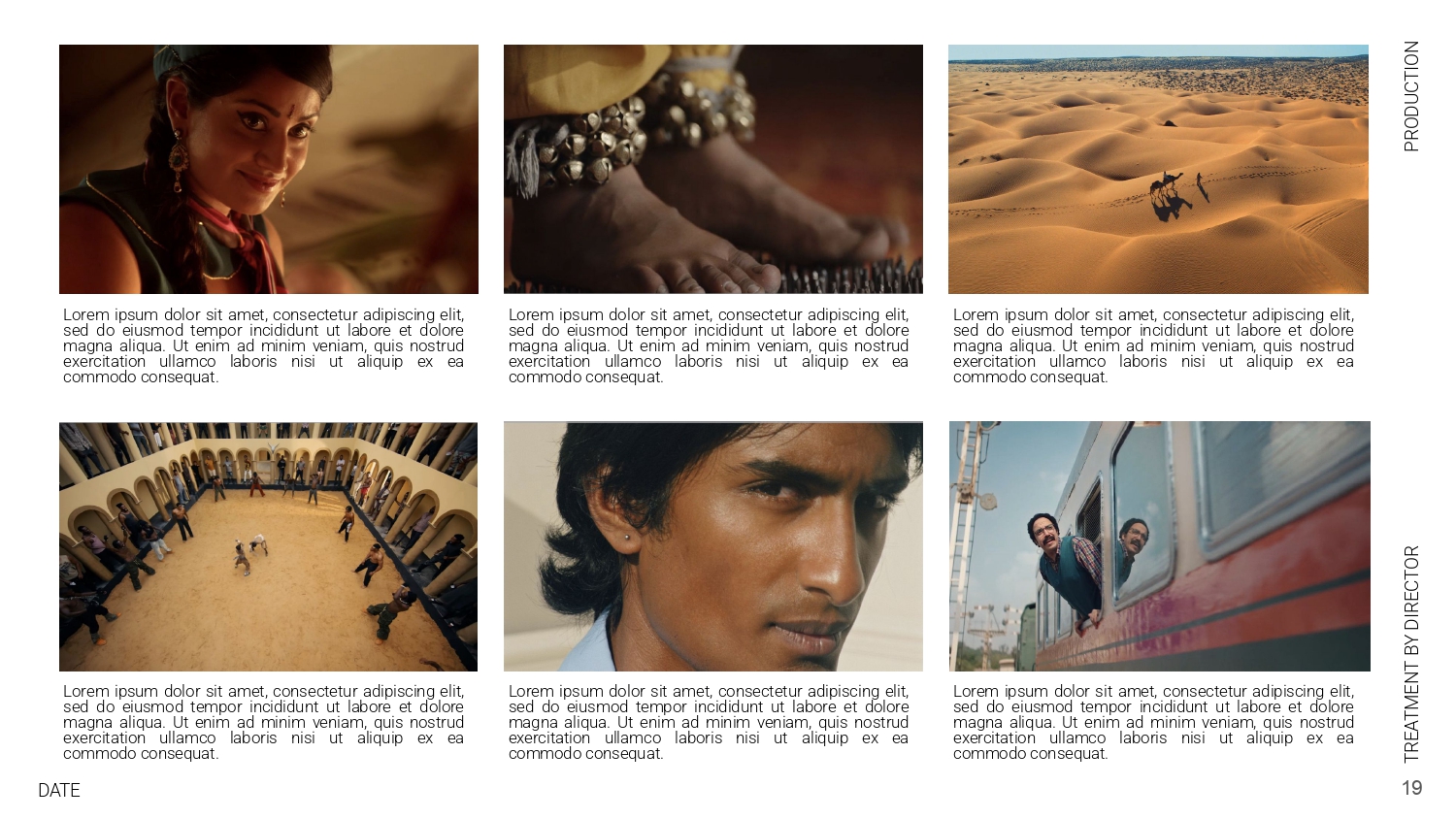 This Keynote + Google Slides template (with GIF support in Google Slides version) is designed for directors pitching commercials with an Indian or South Asian aesthetic.