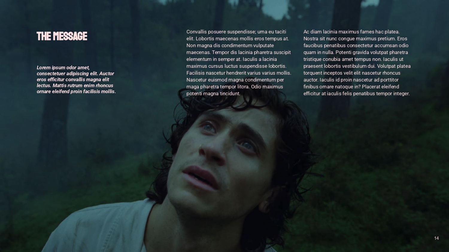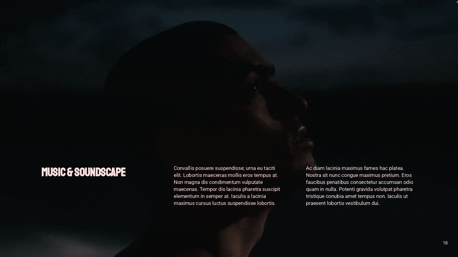 Keynote + Google Slides template (with GIF support in Google Slides) for creating visually rich, cinematic treatments.